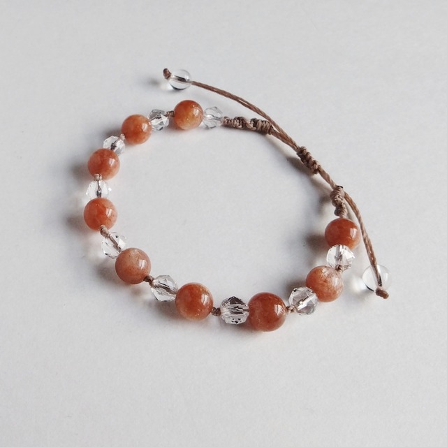 ストロベリーサンストーンandスターカット水晶 マクラメブレスレット