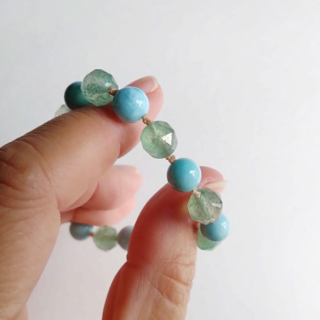 ラリマーandグリーンストロベリー マクラメブレスレット