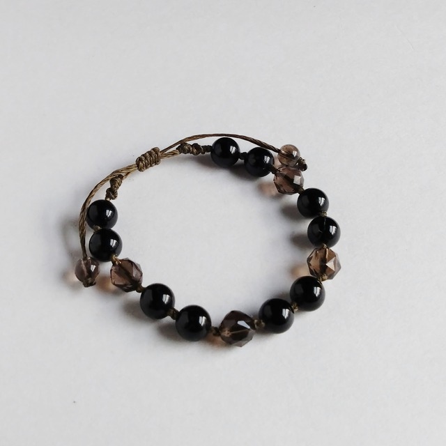 オブシディアンandスモーキークォーツ マクラメブレスレット