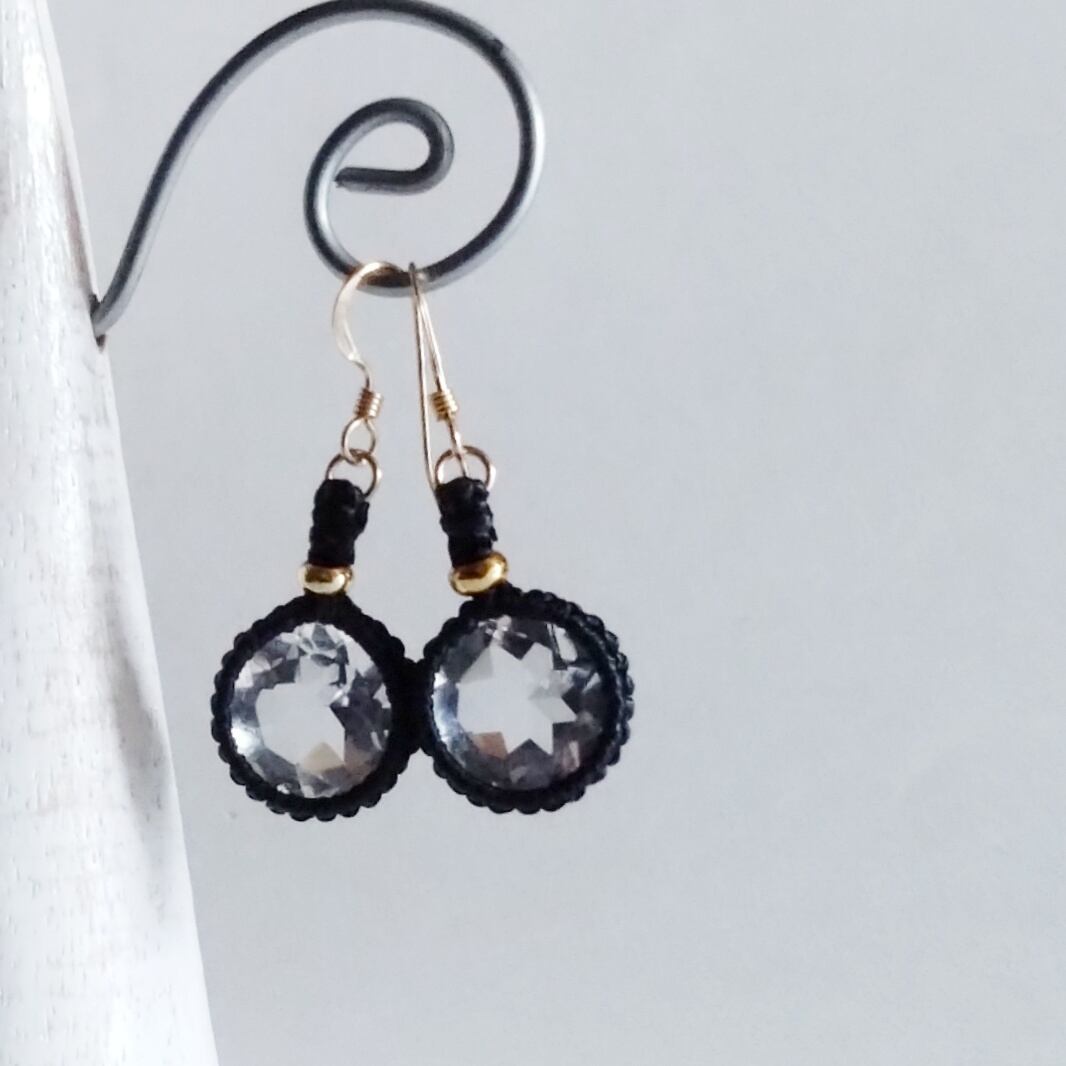 #マクラメ #イヤリング #ピアス #水晶 #キラキラ #ファセットカット #天然石 #通販