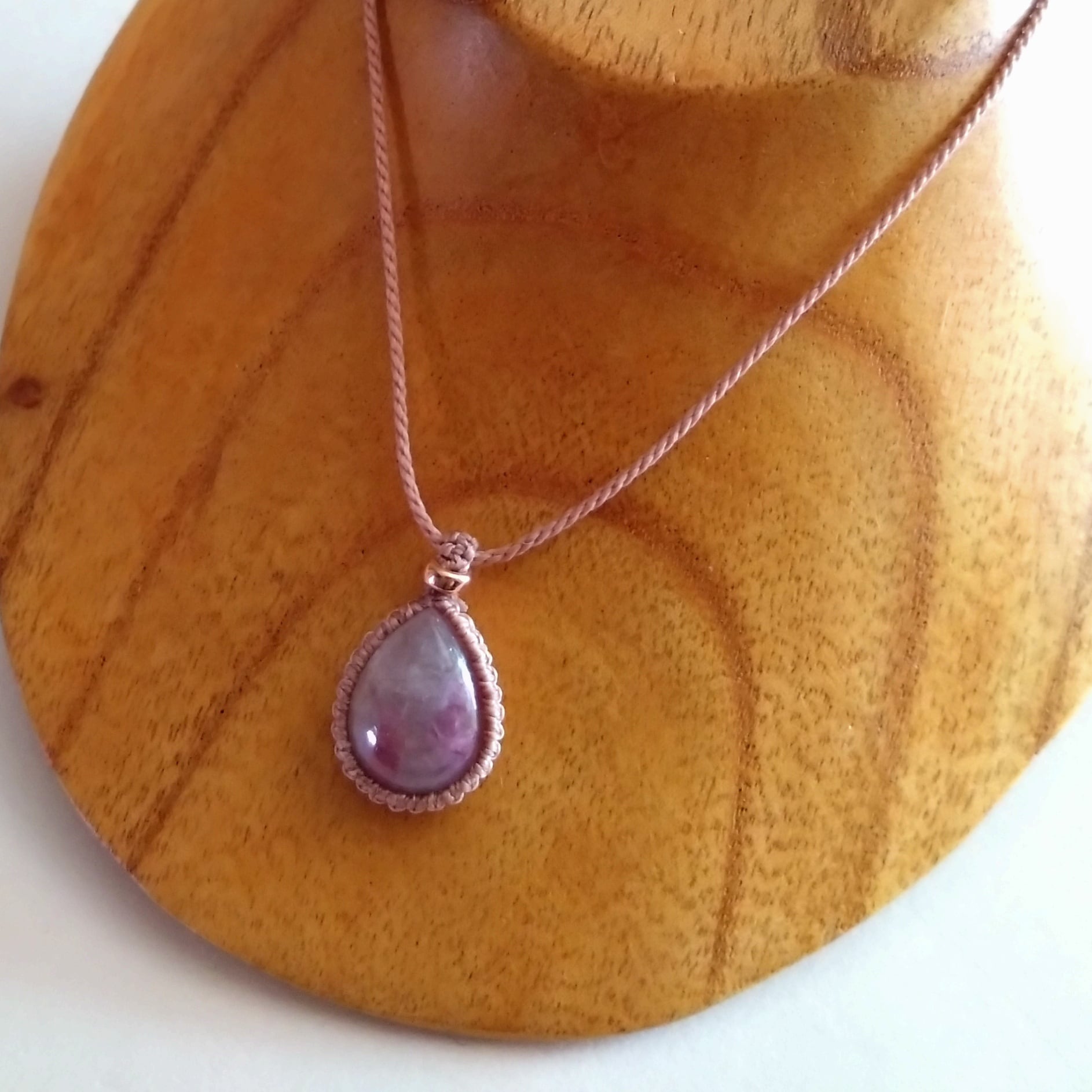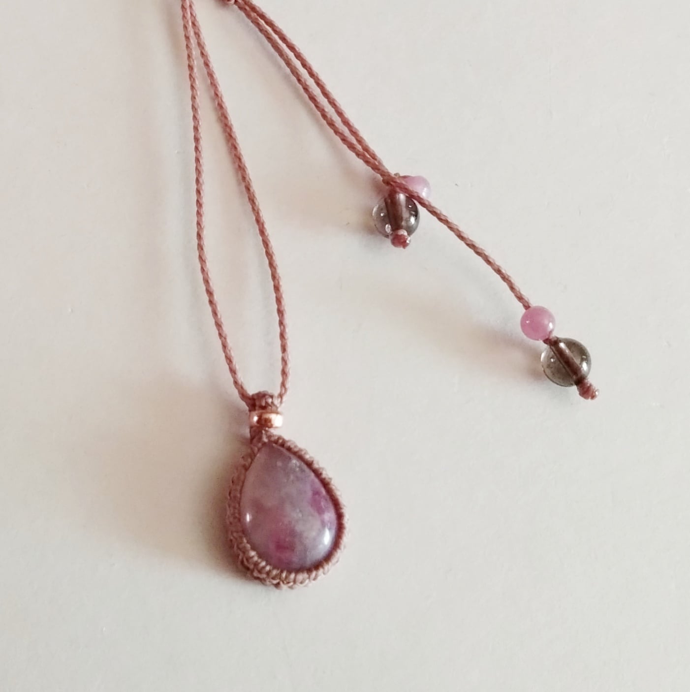 ピンクトルマリンシリカのマクラメネックレスです。