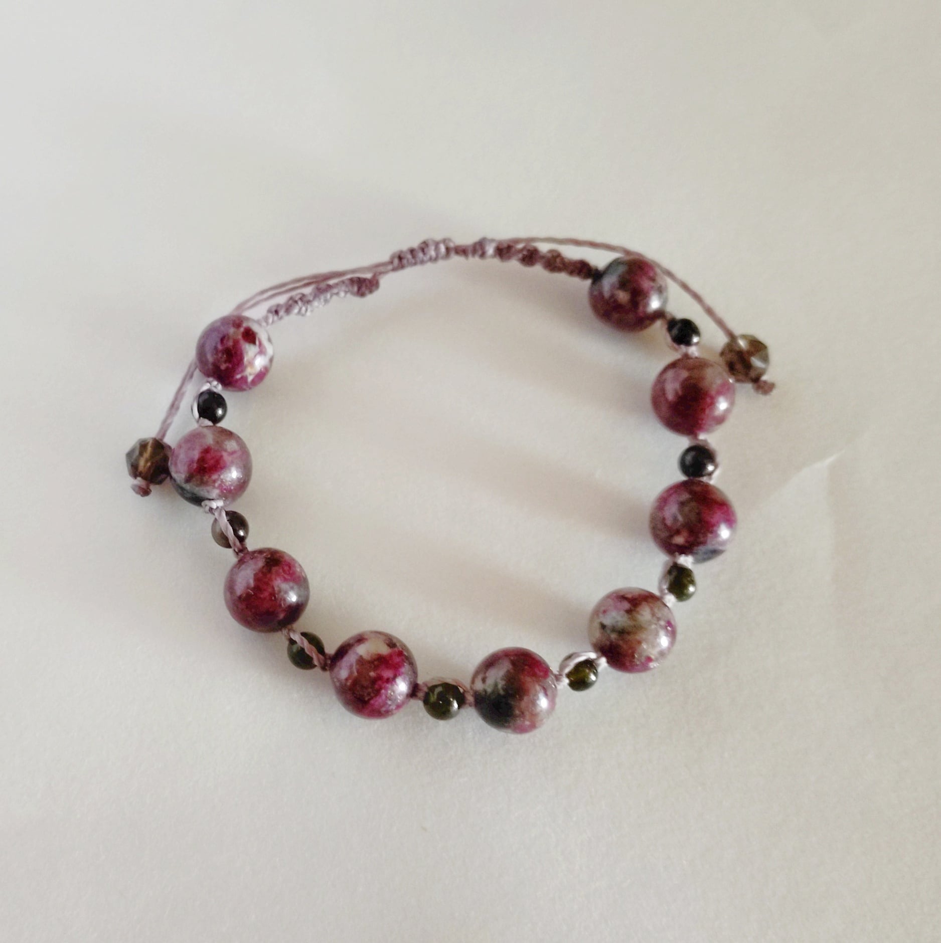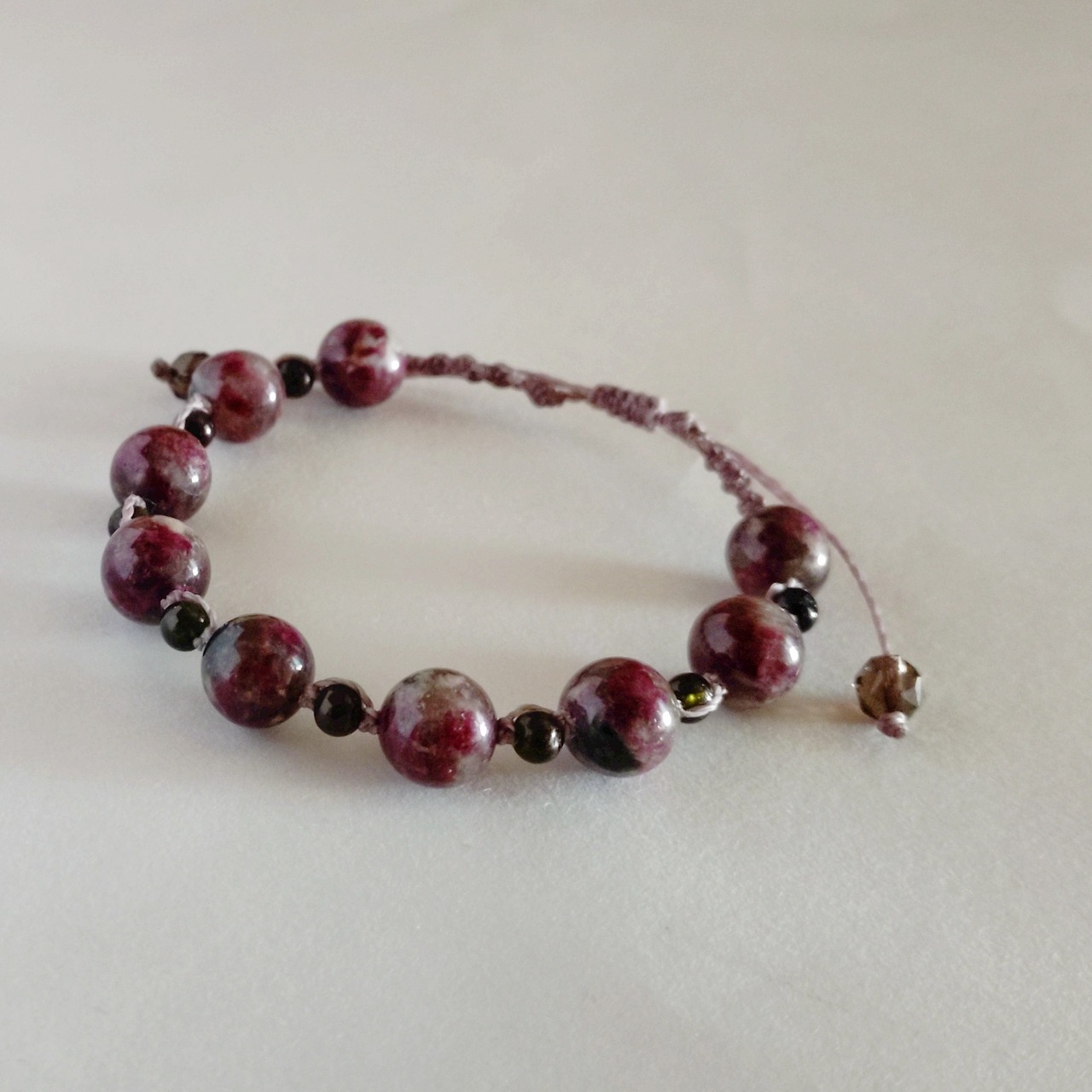トルマリンを合わせた天然石のマクラメ編みのブレスレットです。