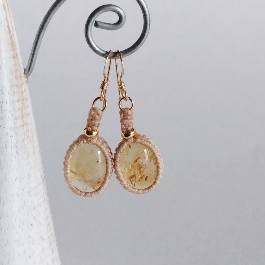 シトリンのマクラメ ピアスです。