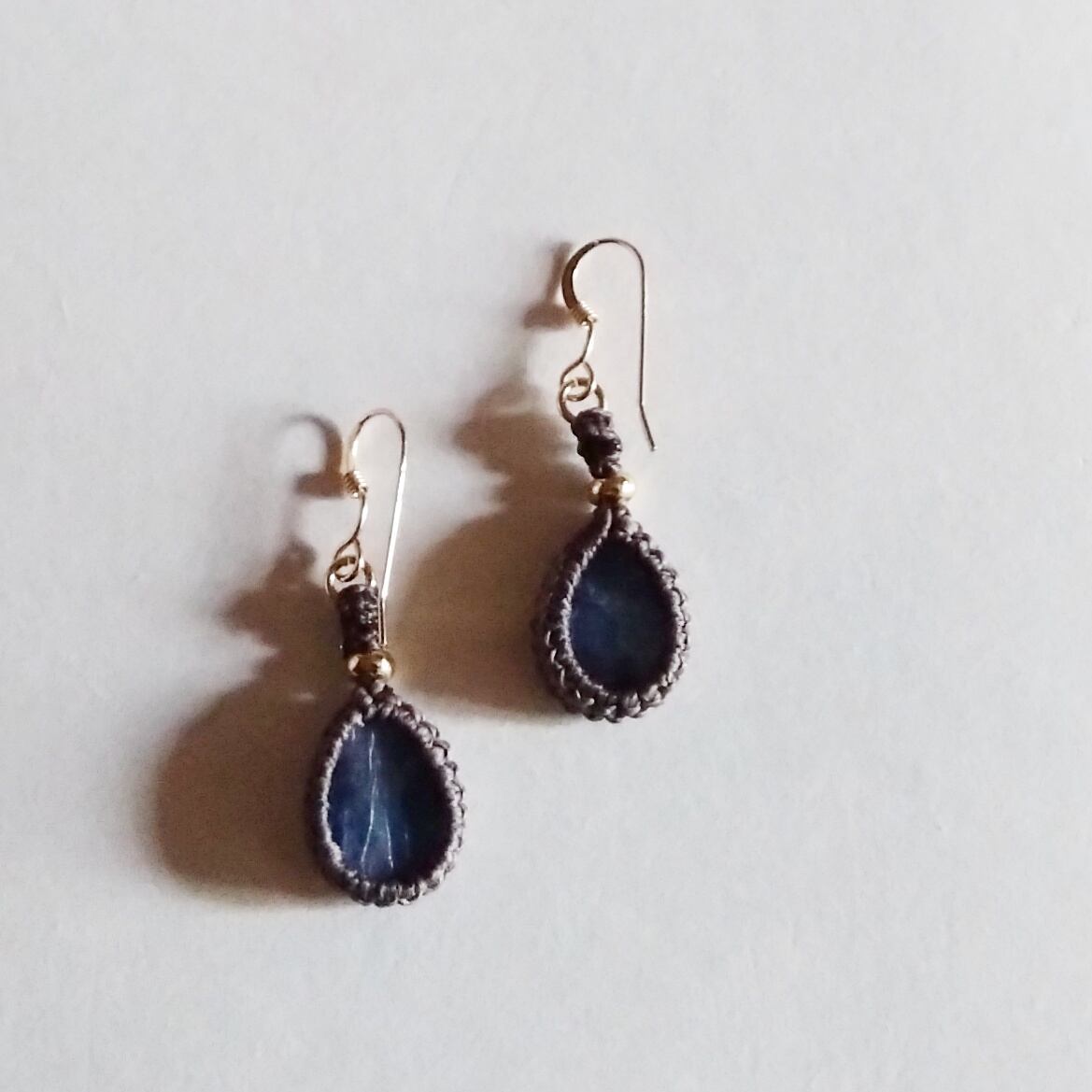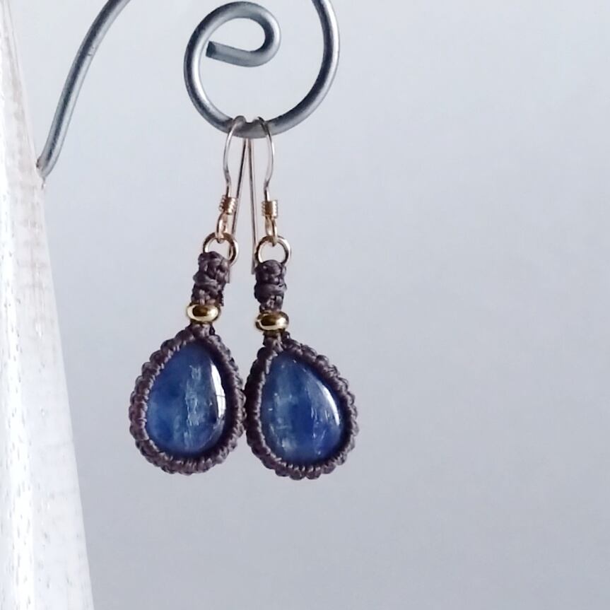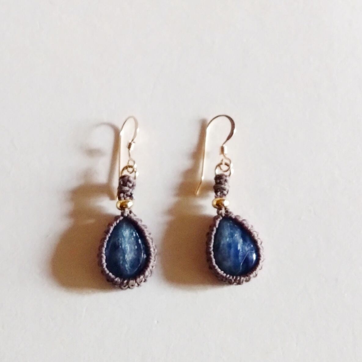 #マクラメ #イヤリング #ピアス #カイヤナイト #青 #天然石 #通販